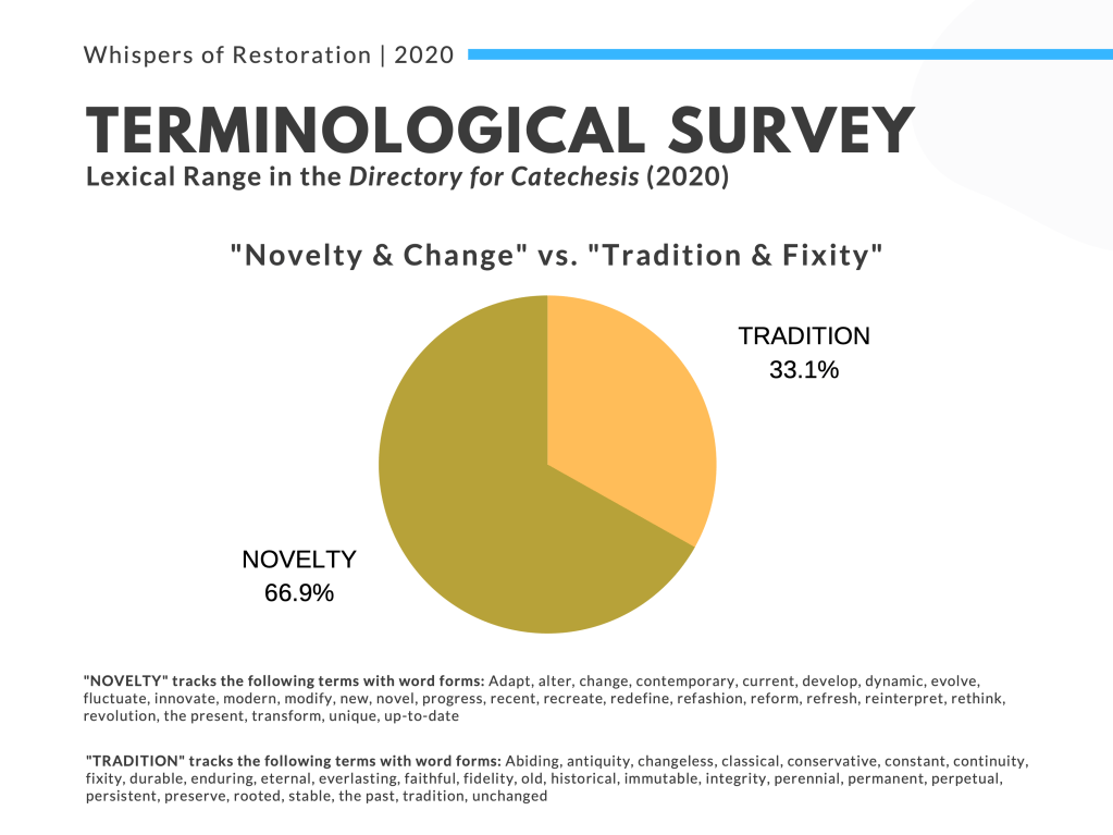 By far the most revealing “raw data” on the DC’s novelty, however, is its alarming lexical range, which we will unpack further in a coming installment. In several places, the DC calls for “the creation of a new language” (Preface, #5, 41, 44, 326, 400), but it certainly doesn’t wait around for that creation: the DC itself marks a seismic shift in Catholic lexicological history. Its pages are so teeming with novel words and phrases, that even attempting to define them all would approach impossibility (which is perhaps why the DC seldom bothers to define its terms, and includes no Glossary).