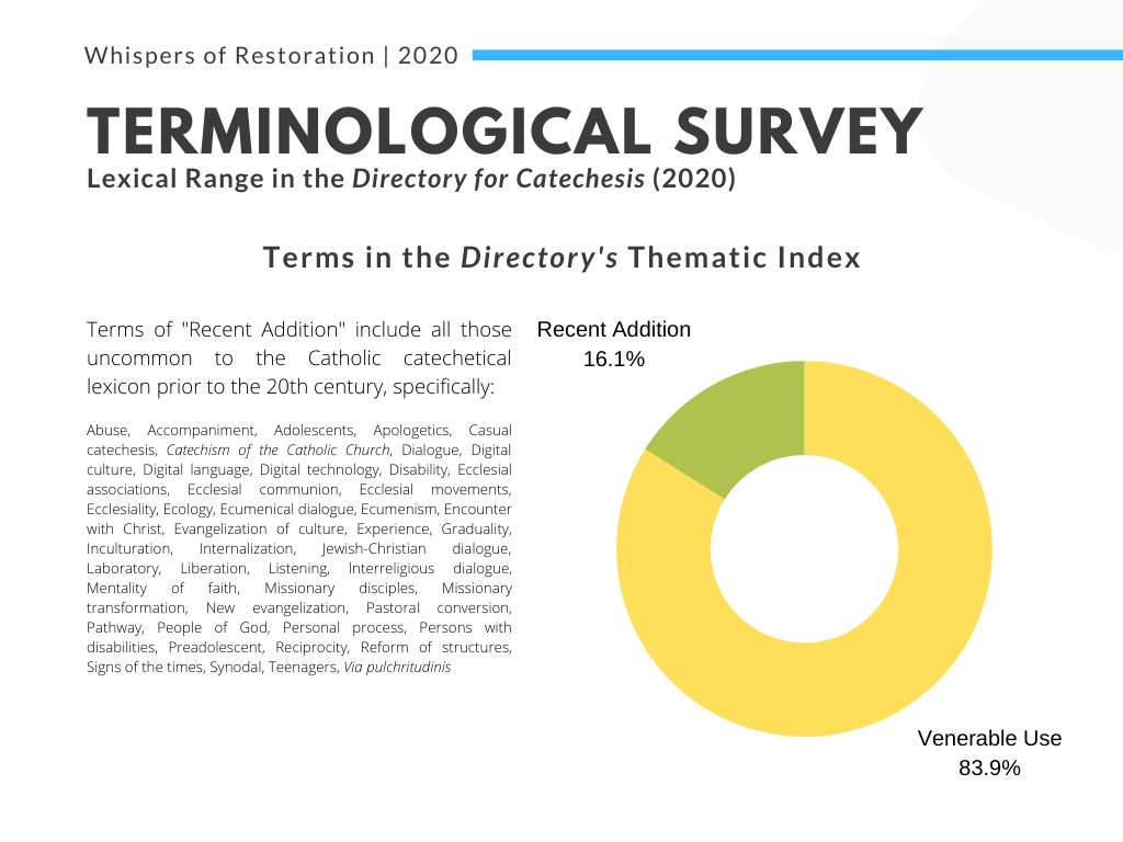 Furthermore, of the entirety of terms tracked, about one in four may be regarded as foreign to the Catholic catechetical lexicon prior to the 20th century: